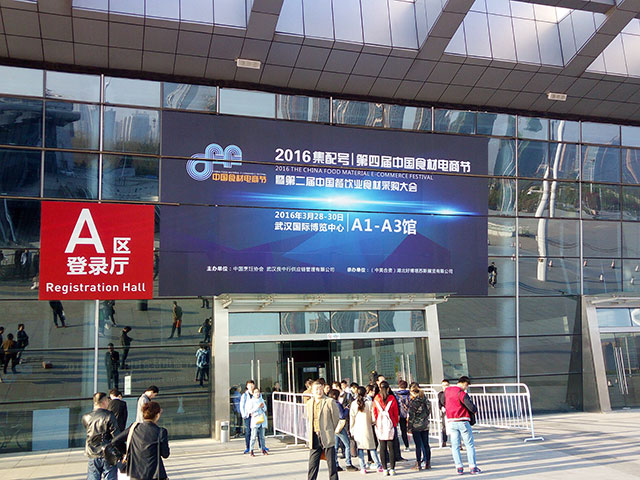 丹东全德高科海产有限公司参加在武汉国际博览中心举办的2016第四届中国食材电商。依托丹东丰富的海洋资源和全德集团投入数亿元自主研发生产的PVDC全阻隔包装材料,在不添加任何添加剂和防腐剂的条件下,保证海鲜新鲜味美,口感鲜嫩,延长保质期。