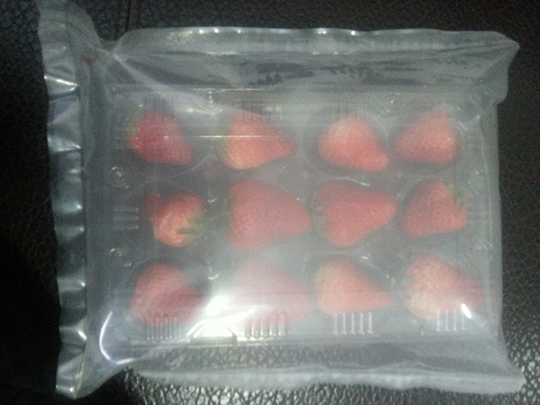 我公司本着充分利用丹东优质农副产品资源优势,打造丹东旅游品牌,让全国人民都能品尝到丹东优质草莓的想法,与全国知名大学合作,将PVDC全阻隔材料包装丹东特产草莓,通过气调包装技术使草莓保质期达到15天左右,并使草莓品相新鲜和口感香甜,气味浓郁,预计于2015年投入市场。以丹东草莓为突破点,将丹东特色产品,如蓝莓等高经济作物推向全国。 PVDC高阻隔复合包装袋 结构:BOPP/tie/五层PVDC共挤薄膜 规格尺寸:按用户需求加工。