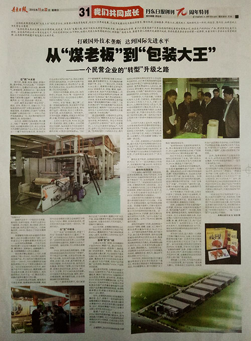 “企业转型是必然趋势, 煤炭是不可再生资源, 随着能源结构调整, 煤炭国内还没有哪家民营企业能够自主研发生产PVDC薄膜, 如果研发成功, 将会弥补国内包装市场的一项空白。 ”胡晓丹表示。
